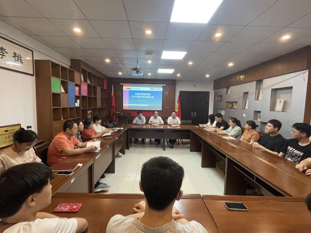 6月24日,环资学院举办2024届毕业生座谈会。学院党委书记李俊、副院长胡志军、党委副书记张进,各系负责人、班主任、学工办,以及2024届毕业生代表参加了此次座谈会。会议由张进主持。