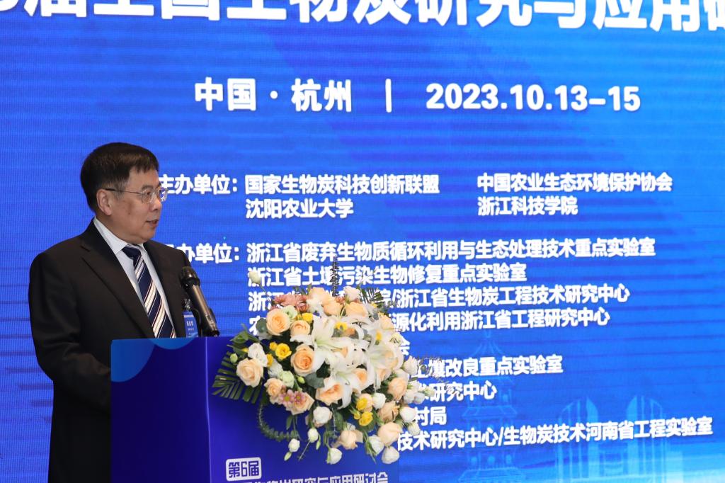 10月13日至15日,第六届全国生物炭研究与应用研讨会在杭州举行。本届会议由我校与国家生物炭科技创新联盟、中国农业生态环境保护协会、沈阳农业大学联合主办。中国工程院院士、沈阳农业大学陈温福教授,中国工程院院士、中国林业科学研究院林产化学工业研究所蒋剑春研究员,中国工程院院士、南京农业大学沈其荣教授,中国工程院院士、中国农业科学院农业资源与农业区划研究所周卫研究员,中国农业生态环境保护协会秘书长高尚宾等出席会议。浙江科技学院党委书记赵东福教授、沈阳农业大学校长陈启军教授等出席开幕式并致辞。大会开幕式由我校单胜道教授主持。