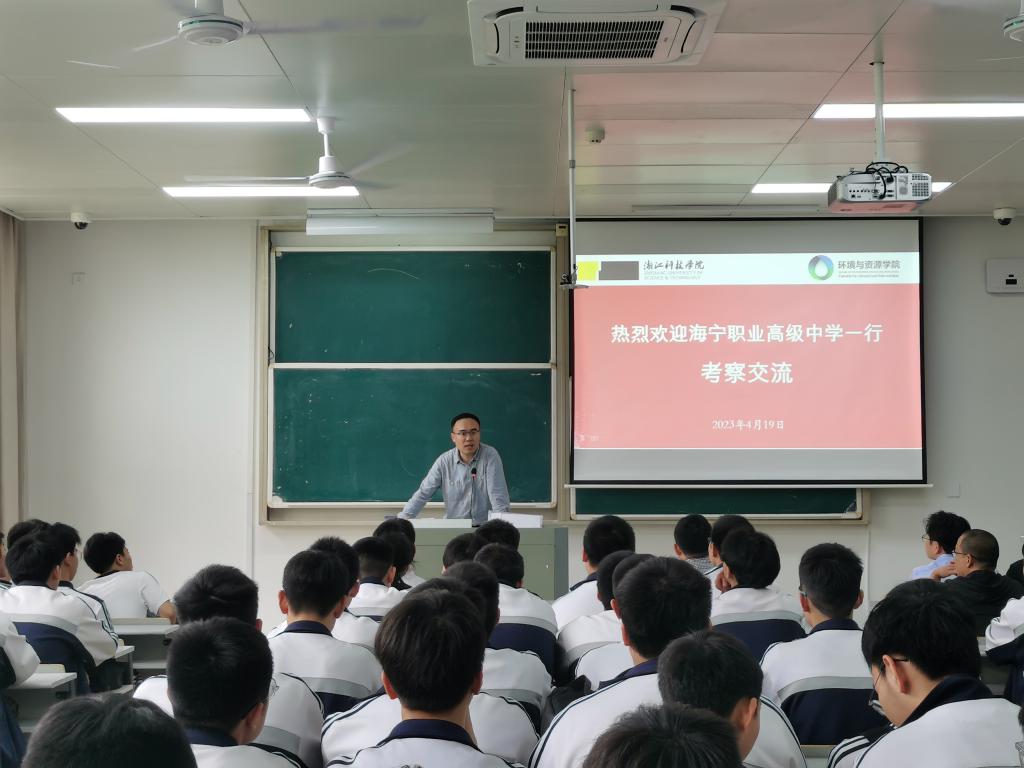 4月19日上午,海宁职业高级中学89位师生来环资学院交流访问,我院党政班子、系部负责人、辅导员及学生代表参加座谈会。会议由学工办主任程勇杰主持。