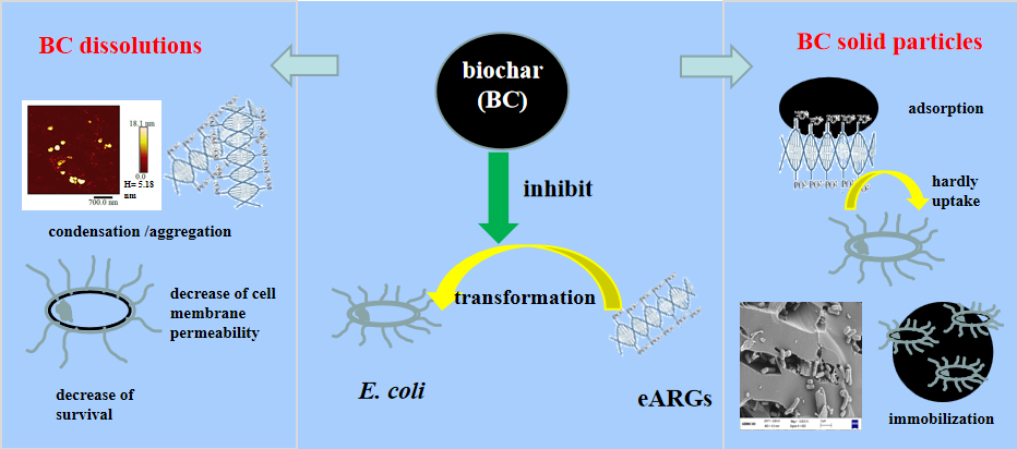 抗生素抗性基因的产生和传播是一个严重的全球性公共卫生问题,如何阻控环境中抗生素抗性基因的传播扩散正在引起政府、公众和科学家的广泛关注,已经成为一项新的研究热点和难点。近日,我院生物质炭开发与利用科研小组,以胞外抗生素抗性基因为切入点,从环境界面化学的角度,较系统地研究了生物质炭对水土介质中胞外抗生素抗性基因的迁移和水平基因转移行为的阻控作用及机制,为利用生物质炭技术阻控环境中抗生素抗性基因的传播扩散提供了重要理论依据。相关研究论文“Pyrolysis temperature affects the inhibitory mechanism of biochars on the mobility of extracellular antibiotic resistance genes in saturated porous media(点击阅读)”和“Biochar effectively inhibits the horizontal transfer of antibiotic resistance genes via transformation(点击阅读)”分别在环境领域著名期刊《Journal of Hazardous Materials》(中科院一区TOP,IF=14.2)2022年第439和第423期上发表。我院方婧教授为论文第一作者,我院单胜道教授和浙江大学林道辉教授为共同通讯作者。