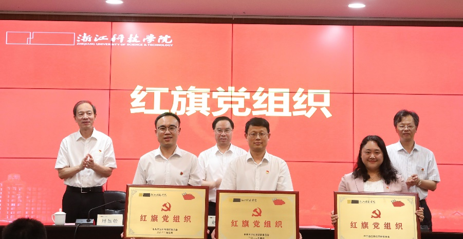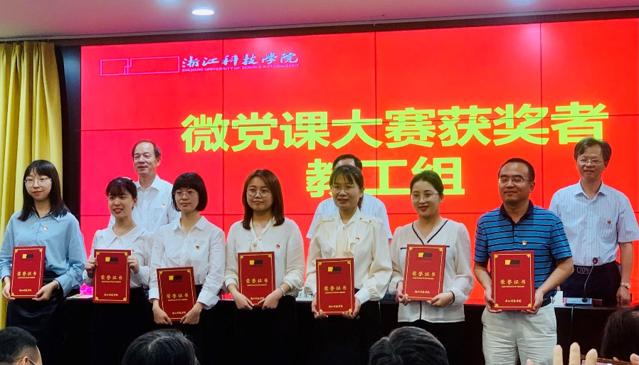 WilliamHILL中国党总支再获校“红旗党组织”;环资学院轻化系教师党支部获“红星党支部”;李莹老师“白+黑”版的双碳故事获校第二届微型党课大赛教工组二等奖,表彰大会上,校领导为获奖单位和老师颁发了证书。