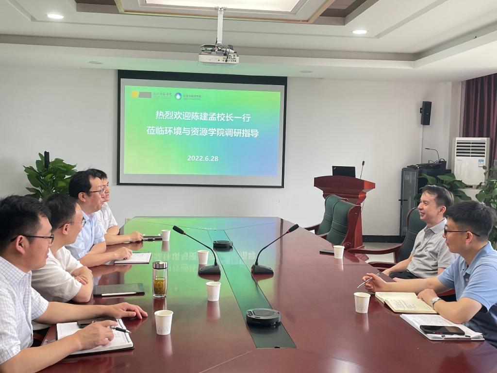 6月28日,校长陈建孟一行来学院调研指导工作。学校办公室余迪毅陪同调研。学院党政班子成员参加调研会。