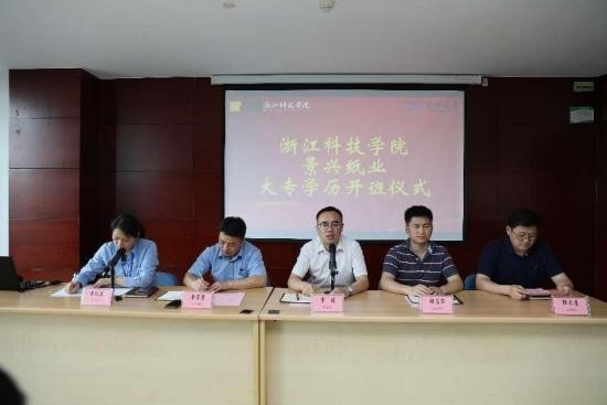 产教融合是是产业与教育深度合作的一种模式,是提高应用型人才培养质量的重要抓手。浙江景兴纸业股份有限公司(简称景兴纸业)是我们的校友企业,近期在人才培养、科研项目、实习实训、员工培训和教师联培等多方面开展了深度合作。2015年完成了110位学员的江科技学院/景兴纸业大专学历大专班学历教育,今年环资学院又与景兴纸业开展新的一期联合培养,50位学员顺利通过成人高考并被我校“现代造纸技术”专业的大专班录取,续写产教融合协同育人新的篇章。