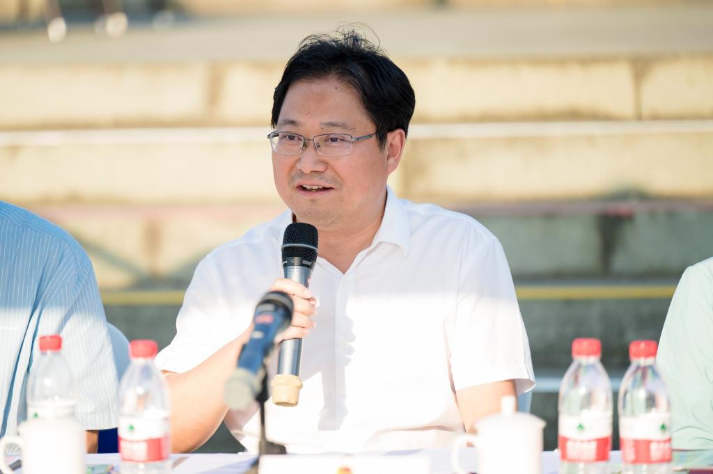 程勇杰代表实践指导教师发言,从浙江科技学院教师和淳安人双重身份作为切入点,介绍了浙江科技学院的办学历程、发展现状和“十四五”时期的发展战略,同时希望从人才培养、科技创新等方面,发挥好校地合作的枢纽作用,主动融入淳安的经济建设和社会发展。我院此次社会实践主题是“聚焦双碳 共赴共富”,依托淳安作为浙江省首创生态“特区”的背景条件,结合学院碳中和创新研究中心平台,重点调研在污染防治数字化改革、能源转型、生态保护与一二三产业融合发展等方面的具体情况。