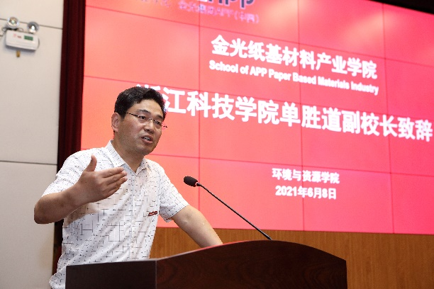 6月8日,金光纸基材料产业学院特色班开班仪式暨产教融合创新发展论坛在图西报告厅举行。副校长单胜道、省经信厅消费品工业处处长刘伟龙、省造纸学会理事长胡开堂、省绿色科技文化促进会秘书长忻皓、金光集团中国区人力资源总经理江俊德、教务处处长沙力争、环资学院党政班子及企业代表出席活动。仪式由环资学院院长刘赫扬主持。