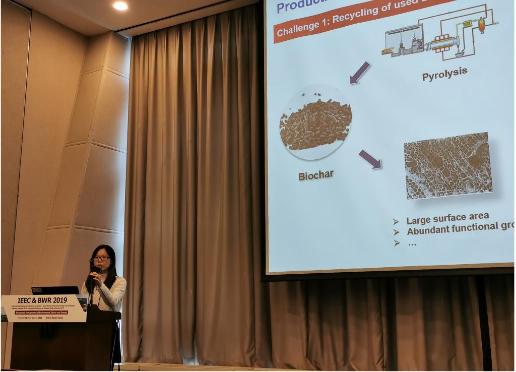 本次会议设有大气污染与气候变化、水环境与水处理、废弃物资源化、信息技术等4个主题环节,共有259个大会特邀报告及主题报告。会上,施赟博士作了题为《The selective reduction of NOx by methane over In-Cebeta》的报告;董隽博士作了题为《Removal of aqueous Pb by magnetically modified biochars: Effects of feedstock properties and production conditions》的报告。