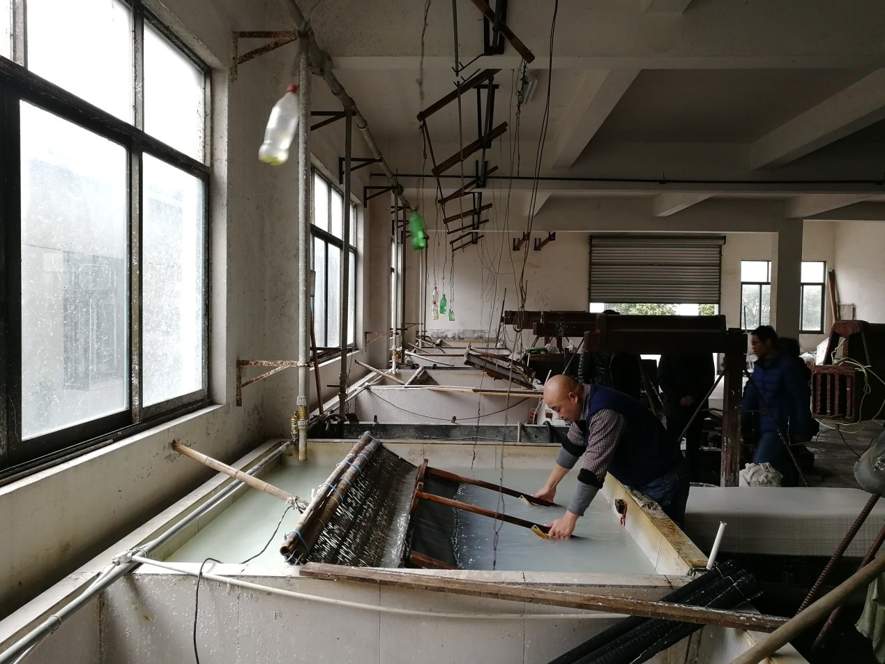 赵会芳教授、张学金副教授、许银超博士等轻化支部党员教师,拜访皮纸制作技艺(龙游皮纸制作技艺)代表性传承人、浙江龙游辰港宣纸有限公司任董事长万爱珠女士,并为企业创新发展中遇到的原料组成、质量评价、中水回用等方面问题,进行了现场的解答和指导。