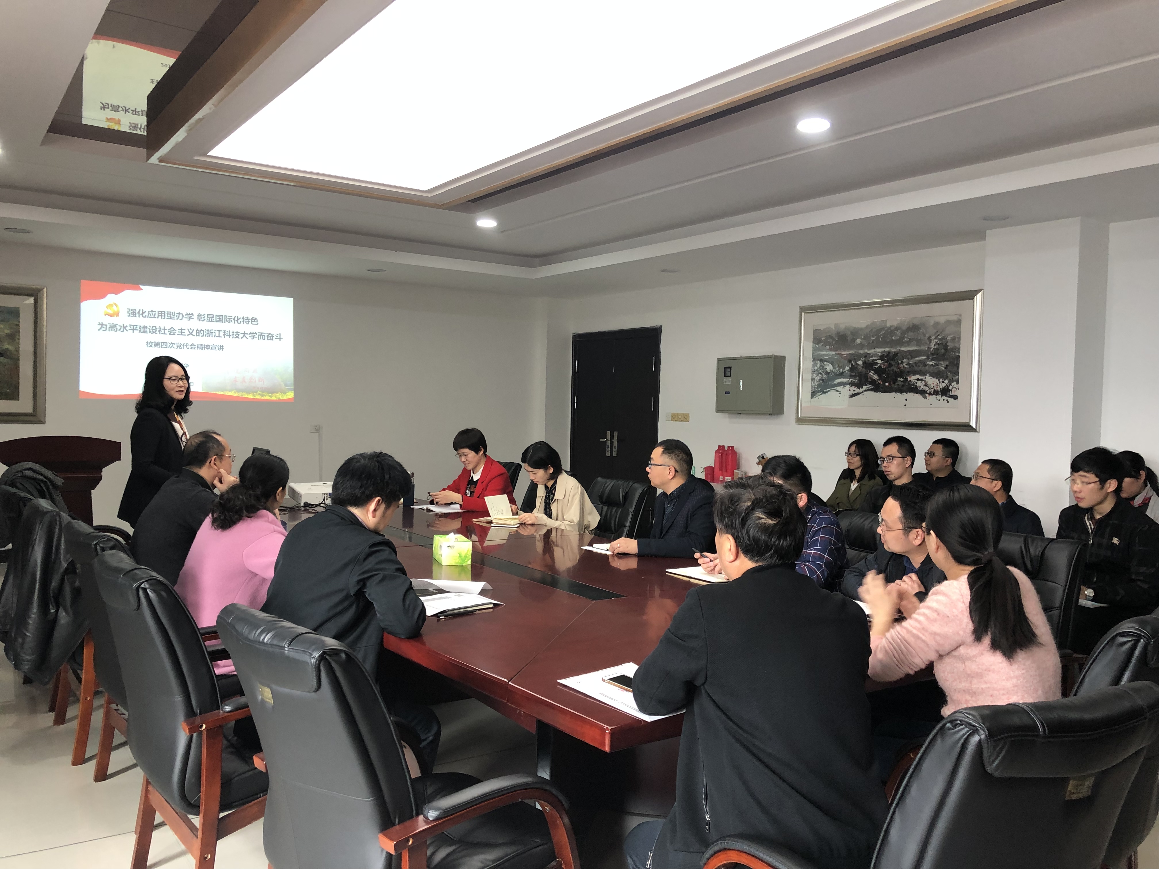 2019年3月20日上午,环资学院党总支有幸邀请到校纪委陆爱华书记来院带领大家学习校第四次党代会报告。学院党政班子全体成员、中层干部及部分教师参加学习。