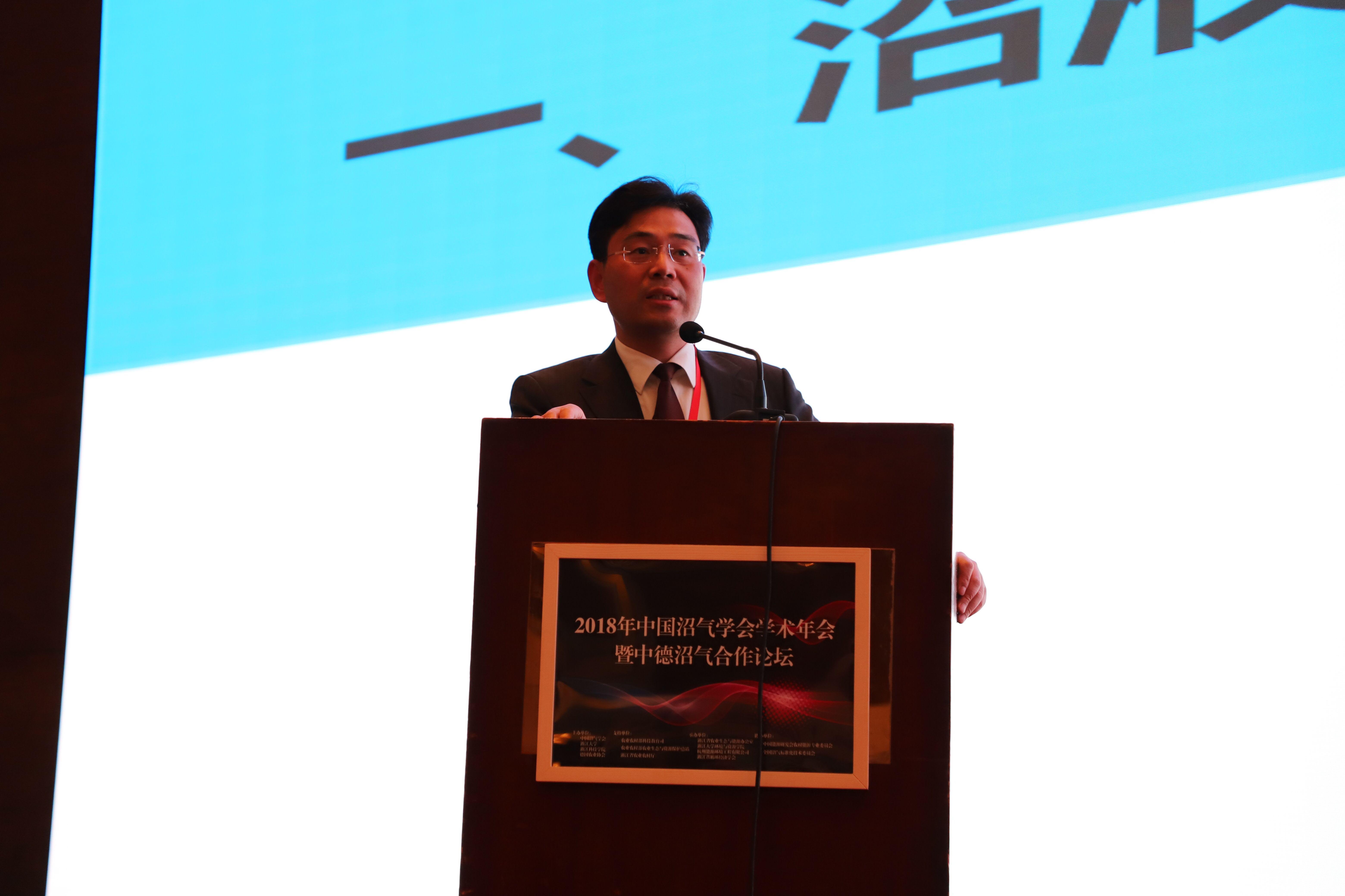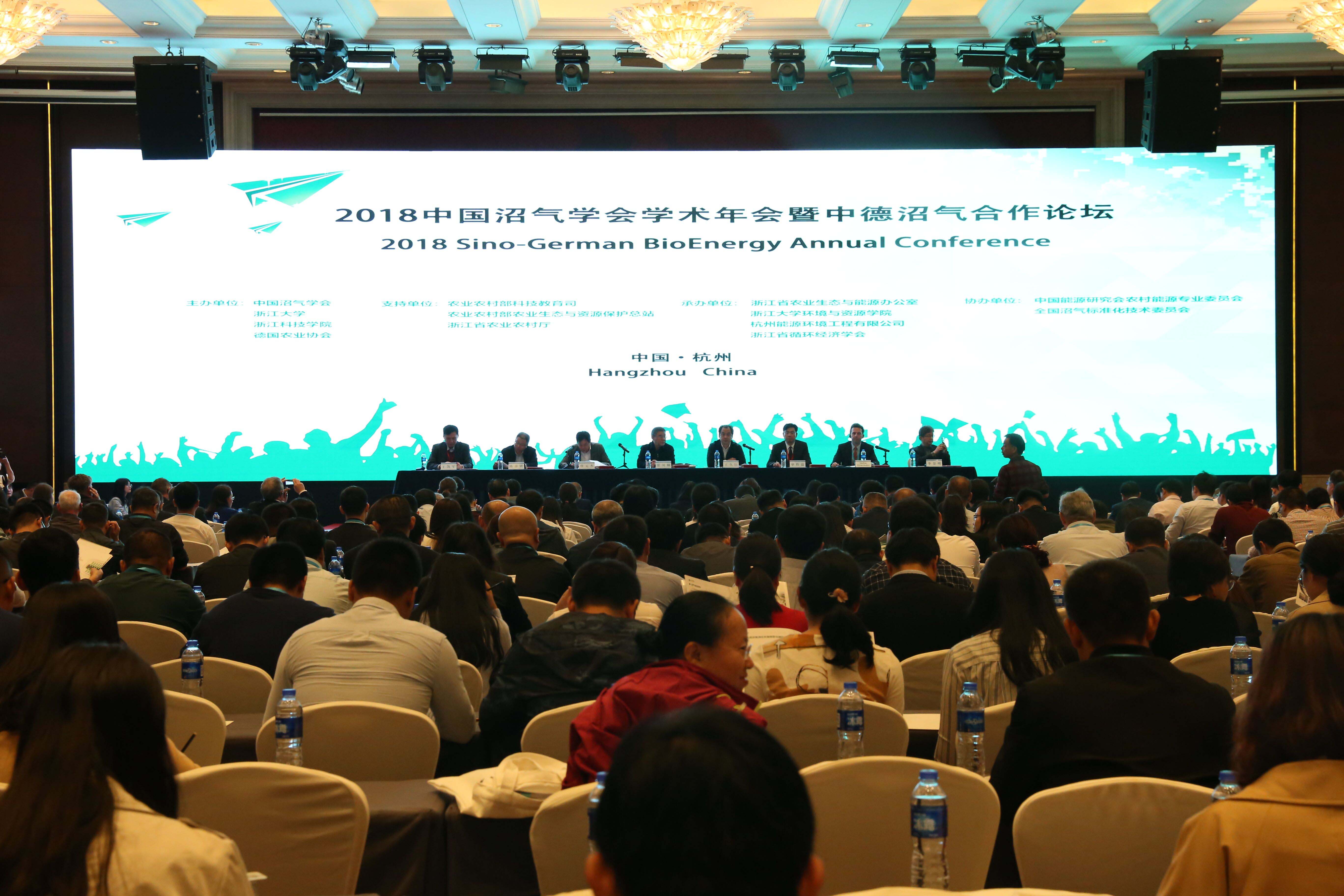 10月30-31日,2018年中国沼气学会学术年会暨第十届中德沼气合作论坛在杭州顺利召开。大会以“乡村振兴、循环利用、绿色发展”为主题,由我校和中国沼气学会、浙江大学和德国农业协会(DLG)联合主办,浙江省循环经济学会和浙江省农业生态与能源办公室、浙江大学WilliamHILL中国、杭州能源环境工程有限公司共同承办,中国能源研究会农村能源专业委员会、全国沼气标准化技术委员会协办。农业农村部科技教育司原司长、中国沼气学会理事长张凤桐、农业农村部农业生态与资源保护总站站长王久臣、浙江省农业农村厅总农艺师蔡元杰、浙江科技学院副校长单胜道、农业农村部科教司能源生态处处长陈彦宾、德国农业部能源司处长Stefan Meierhofer、农业农村部农业生态与资源保护总站首席专家李景明出席开幕式并致辞,中国沼气学会秘书长王凯军主持开幕式。来自中德沼气工程相关领域的专家、学者、企业代表等400余人出席此次盛会。