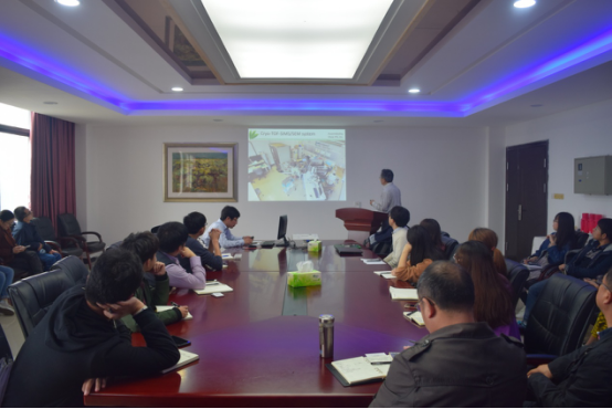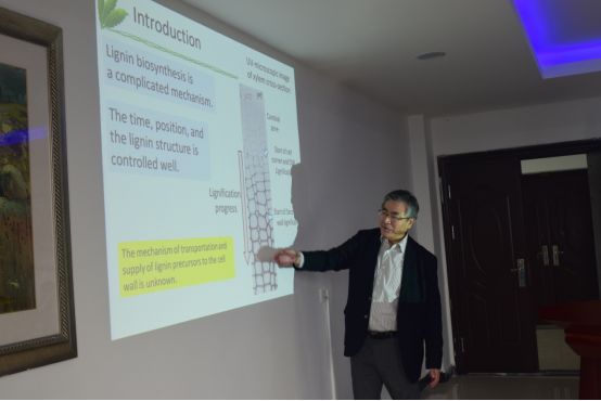 福岛和彦教授为环资学院“3R”学术论坛作了题为“Chemical mapping of water-soluble compounds in plant by Cryo TOF-SIMS”的精彩学术报告。院长沙力争教授等轻化工程系全体教师、及诸多研究生、本科生参加了本次学术报告会。报告上,福岛和彦教授对其实验室研究团队课题植物细胞壁生成与木素生物合成机理作了细致讲解,介绍了冷冻扫描电子显微镜(Cryo SEM)、飞行时间二次离子质谱仪(TOF-SIMS)等世界顶级分析手段在该领域研究应用。