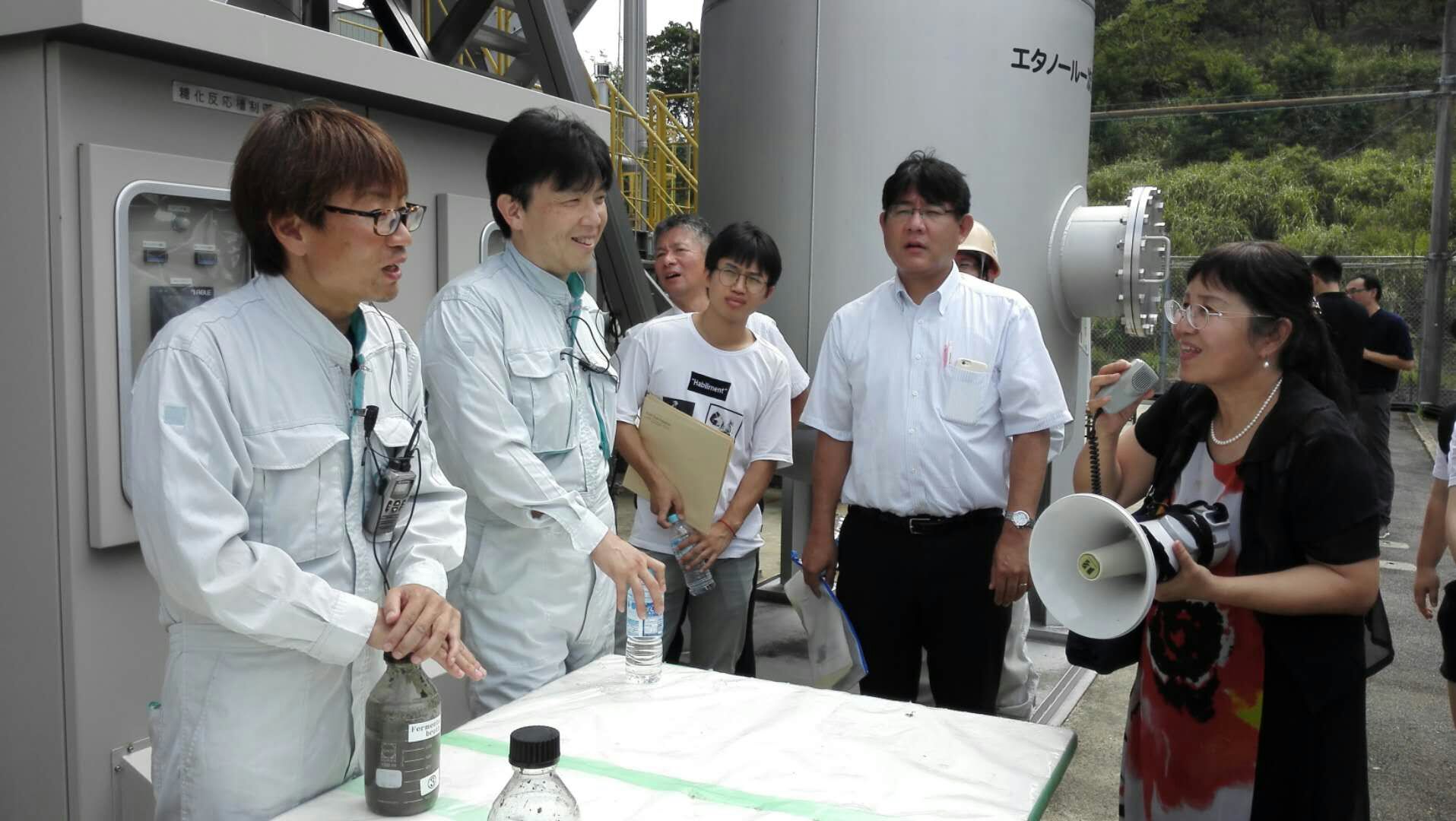 Phthalate (DBP) by Fe3O4 Nanoparticle-Immobilized Pseudomonas Sp. W1 and Its Application Potential in Wastewater Treatment》的报告。28日为主题参观,与会人员前往参观京都日立造船公司旗下乙醇发酵生产厂,该场以城市固废为主要原料,经垃圾筛分、制浆、同步糖化发酵和蒸馏等环节,获得纯度为50%以上的乙醇并进一步提纯。在参观过程中,通过与相关负责人的沟通、讨论,了解了本领域相关先进技术的最新实施现状及进展。本次日本之行拓宽了我院固废处理研究课题组的研究合作空间。