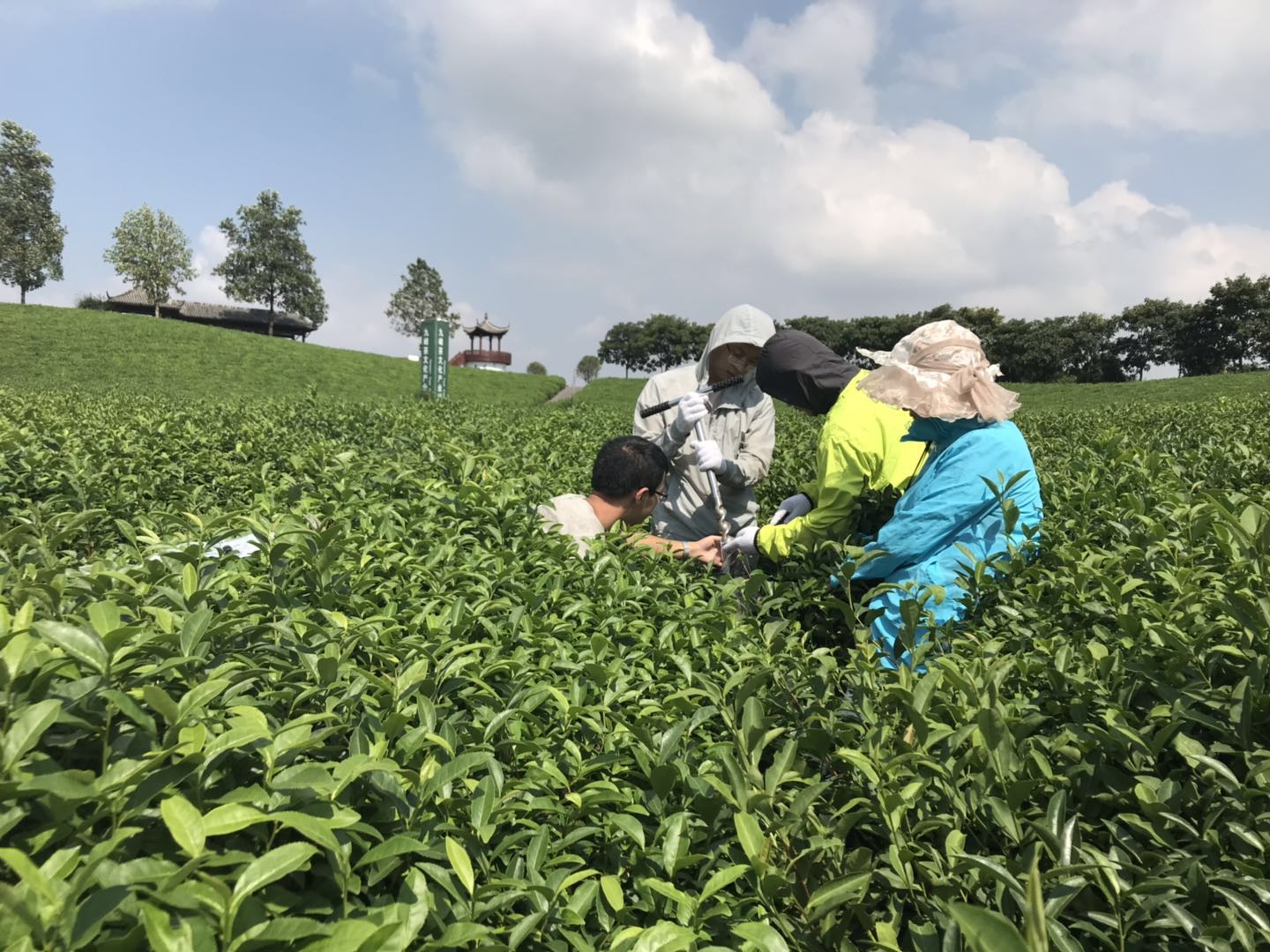 9月26日至9月29日,我院平立凤副研究员等4名研究人员赴浙江金华市佳乐乳业有限公司(九峰牧场)、浙江采云间茶叶有限公司(九峰茶场),在金华市农村能源办公室刘国强主任、陶卫平工程师等领导的支持和指导下,建设茶树沼液精准施用研究基地,明确了茶树沼液精准施用技术试验田块,并具体划出试验小区,将对沼液施用量、施用时间和施用方式及其对作物产量、品质的影响进行研究,并考察沼液施用对农田土壤和大气环境的影响评价。
