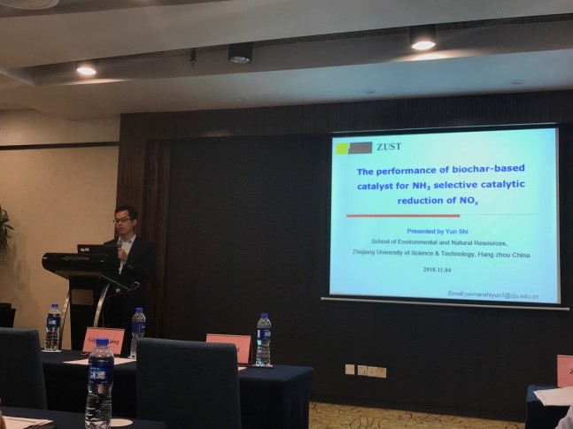 2018年113-8日,第四届亚太生物炭国际会议(The 4th Asia Pacific Biochar Conference)在广东佛山顺利召开,大会以“生物炭研究与应用的前沿技术”为主题,围绕生物炭制备、生物炭新型材料研究、生物炭与纳米材料、土壤微生物活性、土壤养分、生物能源、气候变化、环境修复、土壤修复、污水处理等11个议题展开广泛交流和讨论。来自中国、加拿大、韩国、新西兰等20多个国家的生物炭领域专家学者和与会代表约360人齐聚一堂;大会共征集主题论文352篇,邀请了78位业内外专家,其中外籍院士1人、国内院士3人、国际专家35人,国内包括国家杰青、长江学者等专家43人。我重点实验室单胜道教授、张进副教授、孟俊副研究员分别主持“土壤修复”和“研究生报告”分会场,孟俊副研究员、张立挺博士和施赟博士分别作题为“Contrasting effects of composted and charred manure on heavy metals uptake by wheat in an acid sandy soil”“One-pot green hydrothermal synthesis of carbon nanodots from waste soy residual for sensitive and selective monitoring of toxic heavy metal ions”“The performance of biochar-based catalyst for NH3 selective catalytic reduction of NOx的报告。