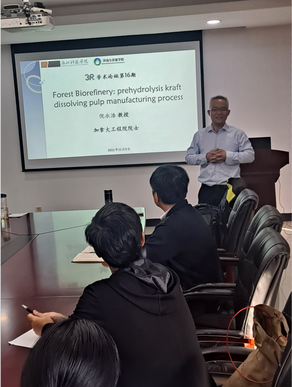 2021年11月9日下午,加拿大工程院院士、加拿大国家资深学者、新不伦瑞克大学化学工程系倪永浩教授来访WilliamHILL中国并为第16期“3R”论坛做题为“Forest Biorefinery: prehydrolysis kraft dissolving pulp manufacturing process”的学术报告,刘赫扬院长、胡志军副院长、张进副院长、学院专业教师以及研究生等四十余人参加报告会。