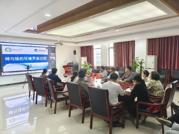 在学术报告中,景传勇研究员围绕环境中典型流动性强的含氧阴离子“砷”和“锑”两种污染物的固液界面反应微观过程和机制,介绍了当前界面过程研究的新原理、新技术和新方法,包括同步辐射技术、傅里叶变换离子回旋共振质谱技术、晶体场理论等。景传勇研究员向大家详细介绍了课题组的最新研究成果。他们利用多种原位表征技术,发现金属氧化物的高活性晶面具有独特的原子排布及电子结构,高效吸附砷与锑,界面产生的自由基调控砷与锑的形态转化。微生物驱动锑形态转化,发现砷呼吸还原酶ArrAB也调控锑的呼吸还原,群体感应相关基因调控了arrAB的表达。这些研究发现为深入了解微生物锑呼吸还原机制迈出了重要的一步,丰富了目前微生物驱动的锑还原转化的理论内涵。最后,景传勇研究员和参会师生进行了互动交流并对相关问题进行了详细解答。