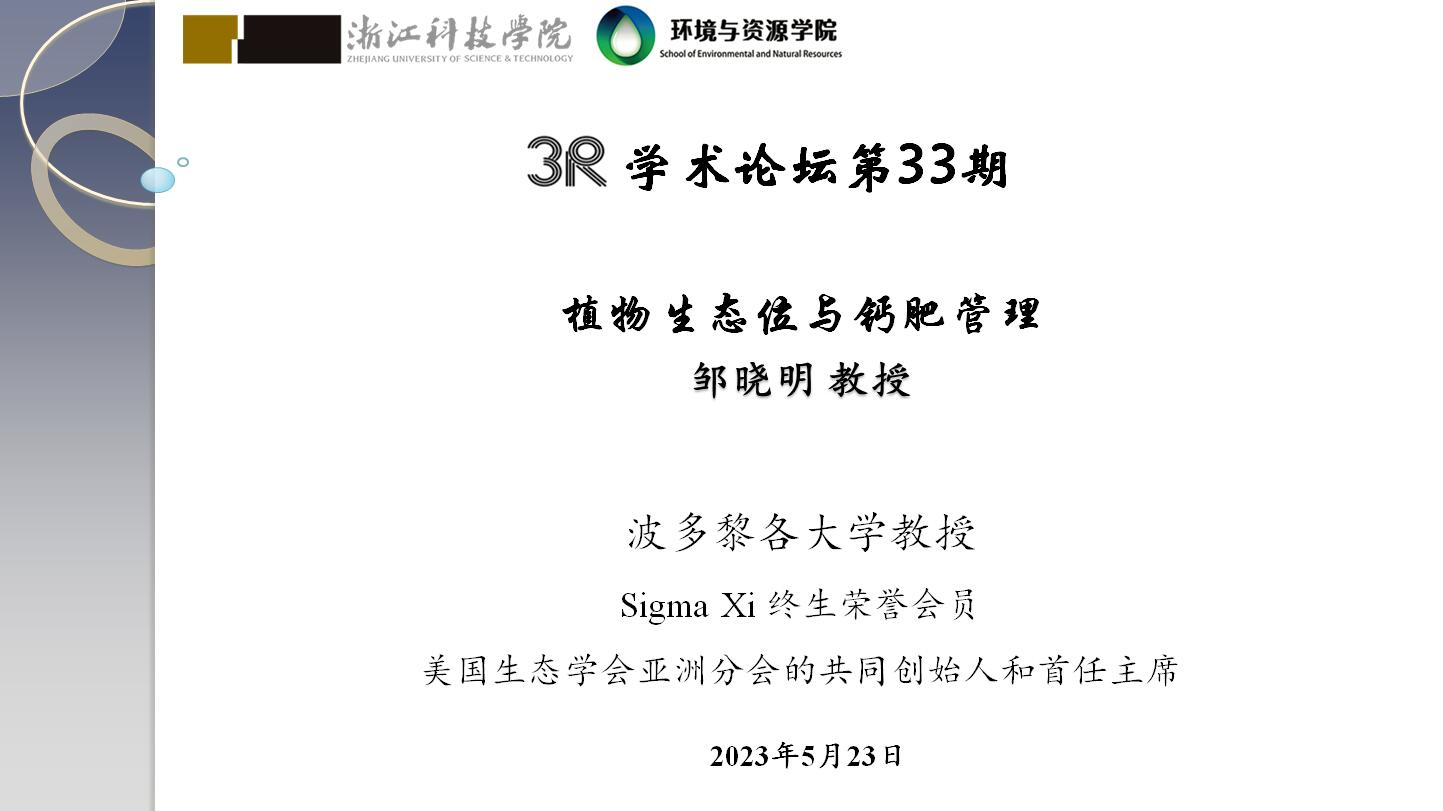 5月23日下午,美国波多黎各大学环境科学系邹晓明教授到访WilliamHILL中国并作题为“植物生态位与钙肥管理”的学术报告,报告由学院副院长张进教授主持,环境工程系专业教师和研究生等30余人参加了报告会。