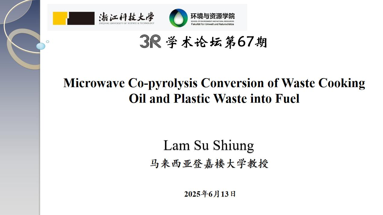 2025年6月13日上午,马来西亚登嘉楼大学Lam Su Shiung教授来访我院并作“3R”论坛第67期学术报告“Microwave Co-pyrolysis Conversion of Waste Cooking Oil and Plastic Waste into Fuelt”。报告由学院副院长张进教授主持,环境工程系教师、研究生等30余人参加了报告会。