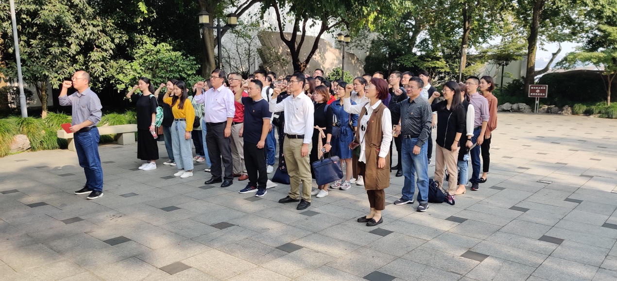 参观期间,我院全体党员还在党旗下重温入党誓词,铿锵有力的誓言表明了大家坚守初心、忠诚于党的坚定信念,“不忘初心、牢记使命”为共产主义奋斗终身的坚定决心。